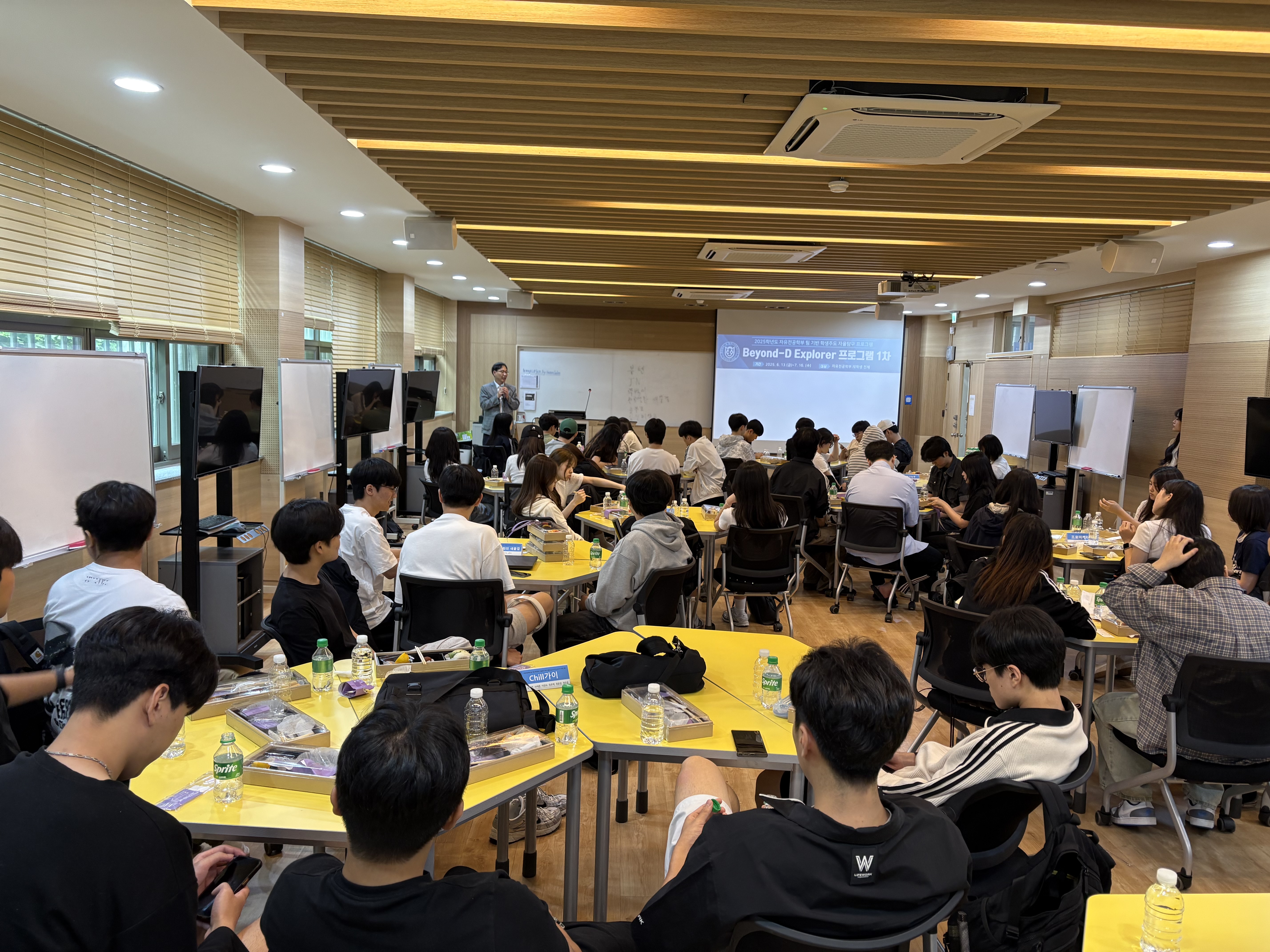 • Beyond-D Explorer 프로그램 학생들이 자발적으로 팀을 구성하고 자유롭게 주제를 선정하여 탐구하는 팀 기반 자기주도적 자유 주제 탐구 활동입니다. 학생들이 주도적으로 문제 발굴, 탐구, 해법 모색 등의 활동을 통해 학문적 문제의식을 고도화할 수 있게 됩니다.